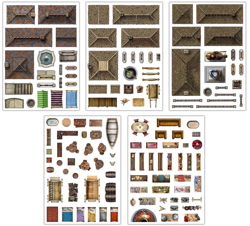 Breng je tabletop avonturen tot leven met Town Trimmings – dé ultieme set van meer dan 100 herbruikbare statische stickers van Loke Battlemats! Transformeer moeiteloos elke gelamineerde kaart met daken, straatmeubilair, winkelinterieurs en meer. Of je nu een bruisende stad of een knusse dorpsstraat wilt creëren, deze veelzijdige decorstukken geven je RPG-maps extra diepgang en sfeer.