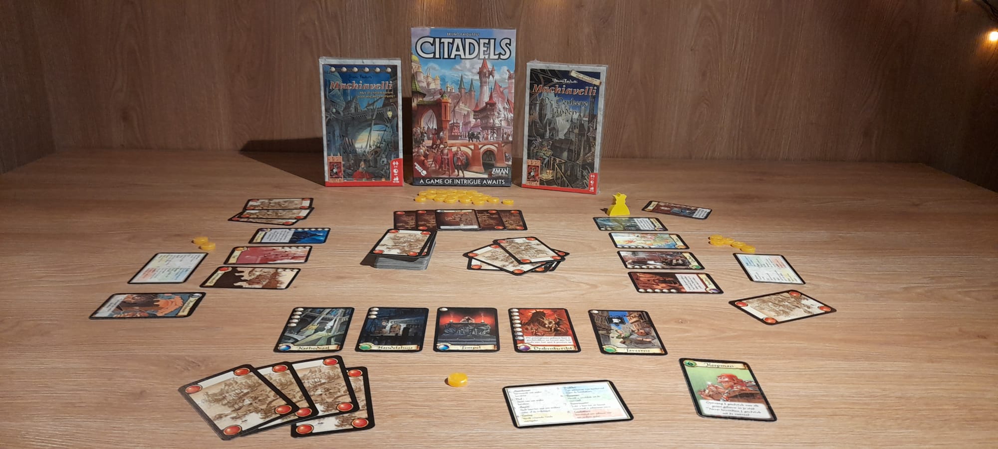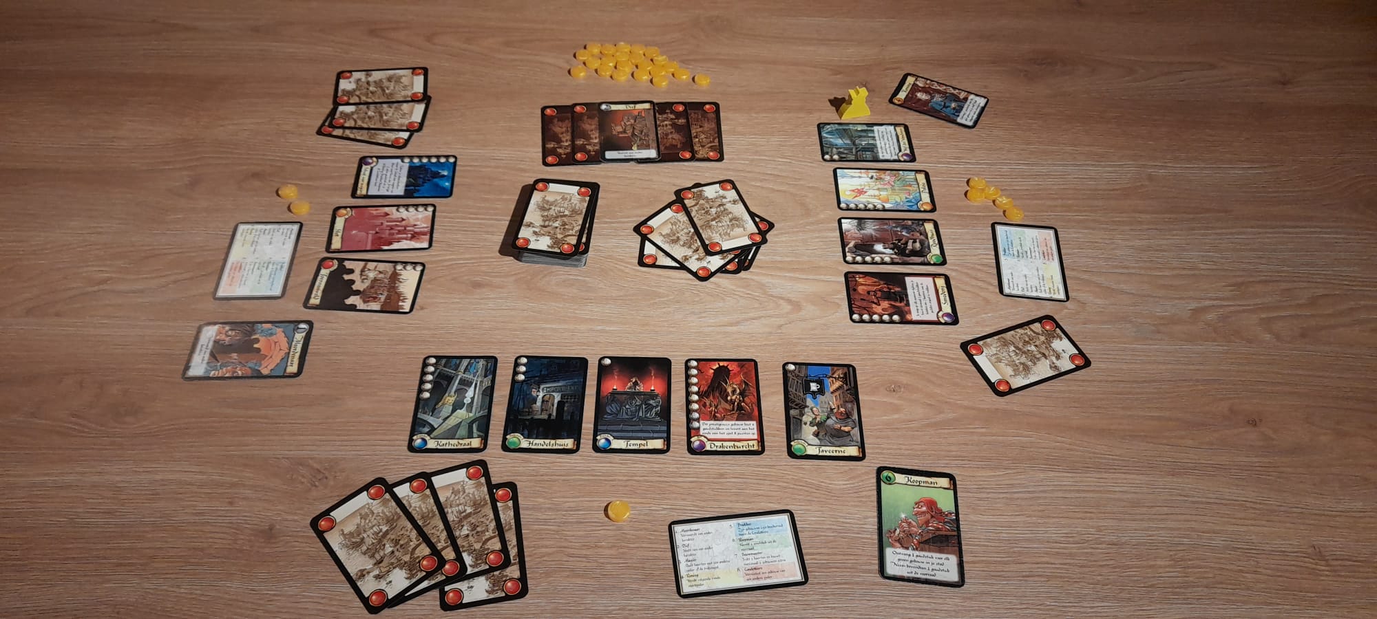 Over de karakters zal ik wat meer uitleg moeten geven. Deze kaarten maken het spel zo uitdagend en complex als dat het zich voordoet. In het standaard spel zitten 8 karakters welke allemaal een eigen nummer hebben (1 t/m 8). Het nummer geeft aan wie als eerst in de ronde aan de beurt is. De speler met de houten koning kiest als eerste een karakter, dan volgt de rest met de klok mee. Ook hebben de karakters een speciale eigenschap/kracht welke grote impact kunnen hebben op het spel of de tegenspelers. Je hebt de moordenaar, dief, magiër, koning, prediker, koopman, bouwmeester en condottiere. Om enkele gamechangers uit te lichten: