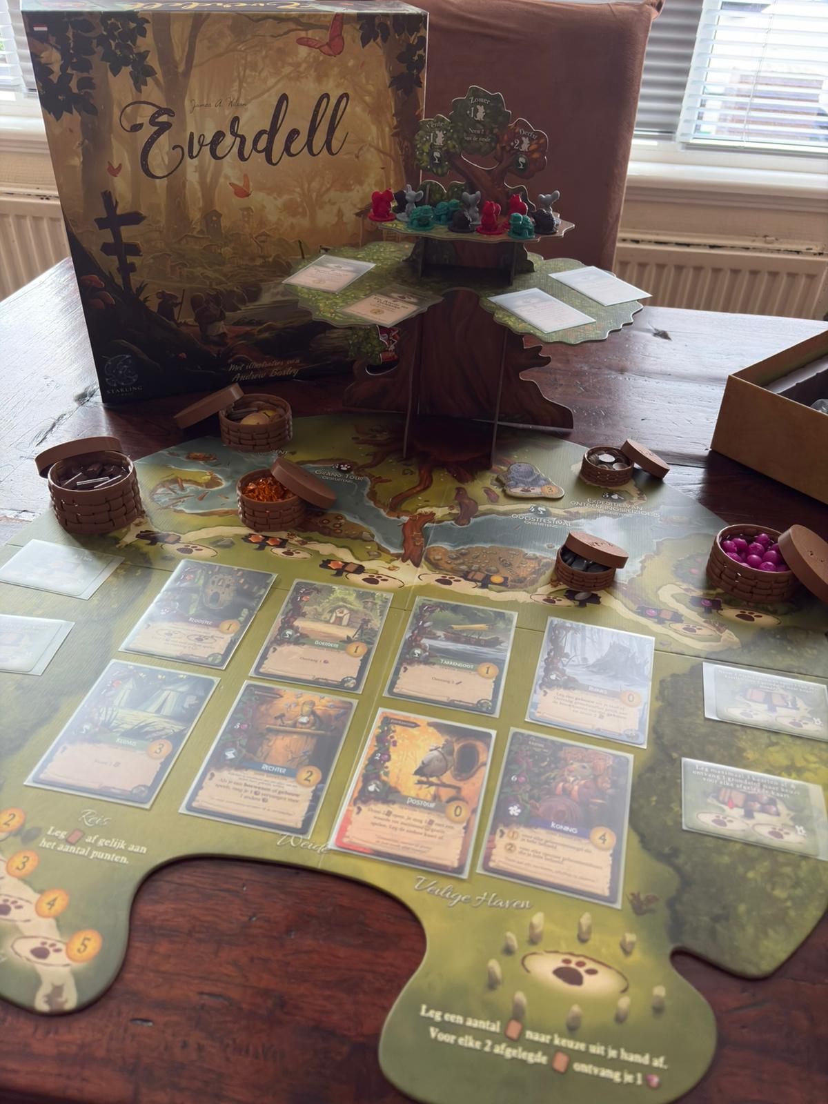 Everdell is voor mij een van de mooiste bordspellen die er is. Het spel combineert worker placement met engine building, maar blijft verrassend toegankelijk. Tijdens het spel bouw je een eigen dorp op in een bos vol dieren en constructies, terwijl de seizoenen langzaam voorbijgaan.