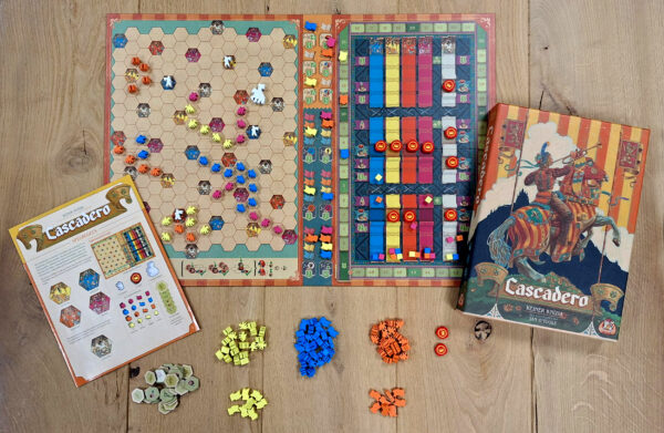 Het koninkrijk is verwoest, de steden zijn verdeeld en de bevolking is wantrouwend. De nieuw gekroonde heerser, El Cascadero, probeert het land te herenigen, maar hij kan dit niet alleen. Daarom benoemt hij 4 ministers om de bevolking te bezoeken en de harmonie te herstellen.Cascadero is het nieuwe epische strategiespel van de veelgeprezen spelauteur Reiner Knizia. Ministers bezoeken steden door gezanten te sturen; maar de steden zijn wantrouwig ten opzichte van enkele gezanten. Nieuwe gezanten activeren alleen een stadstelling als ze onderdeel van een groep zijn of een officieel zegel van El Cascadero hebben. Verplaats je schijven verstandig op het sectorspoor en wordt de favoriete minister van El Cascadero!