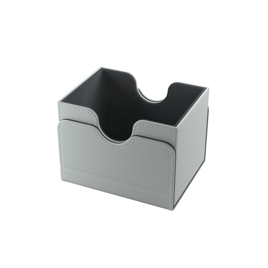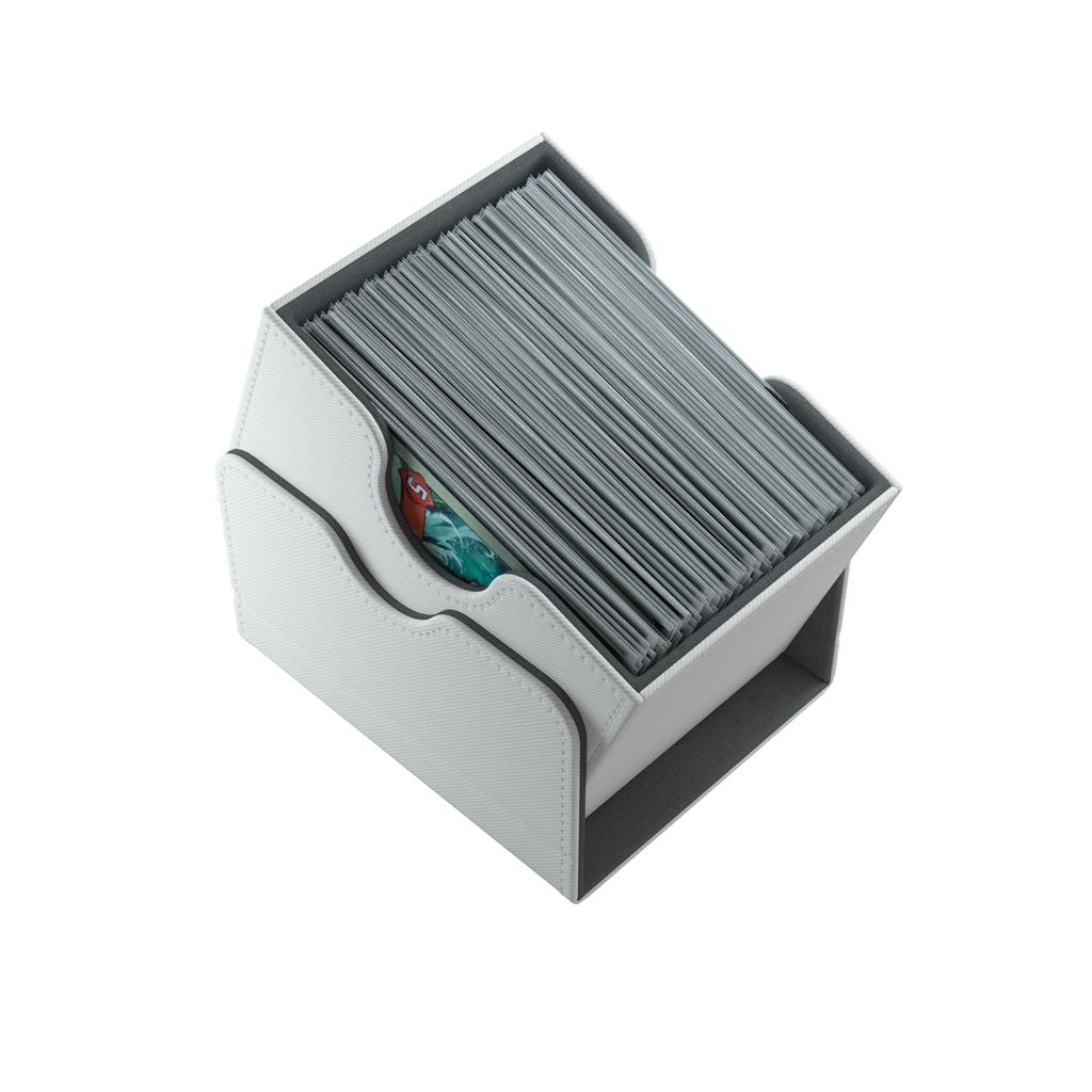 Deze witte, aanpasbare Sidekick deckbox is geschikt voor een deck van 100 kaarten met dubbele sleeves.