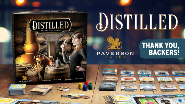 Distilled: The Spirited Strategy Game is a highly-thematic, medium weight euro game about crafting alcoholic spirits in a distillery for 1-5 players. The gameplay takes inspiration from real-world distillery processes with resource management, recipe fulfillment, tableau building, and mitigate-your-luck mechanics.