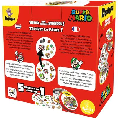 Dobble Super Mario is een leuke variant op het Dobble basisspel en staat volledig in het teken van de iconische karakters uit de Mario-franchise.