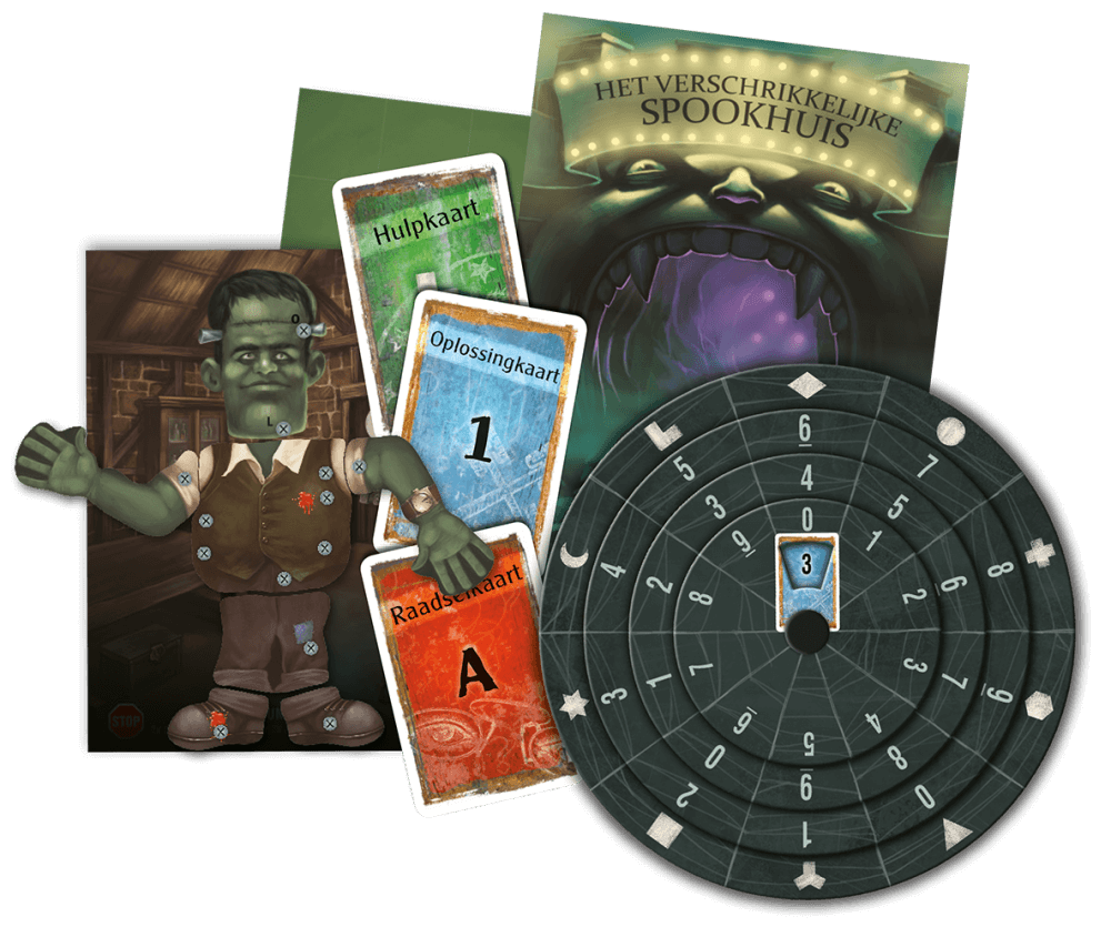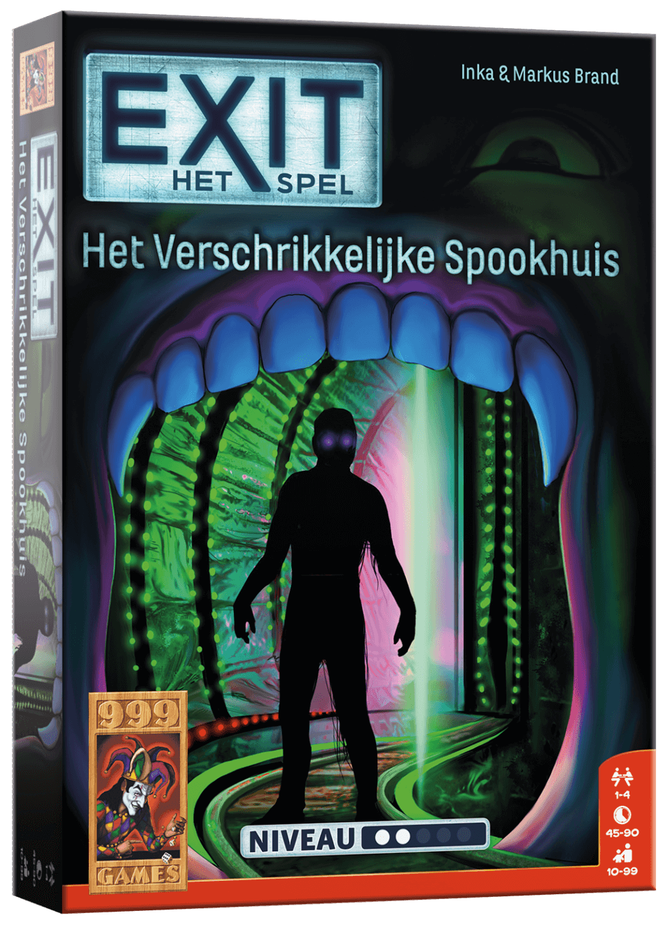 Het uitdagende coöperatieve escape room-spel! Duistere gangen, onheilspellend gehuil, griezelige gedaanten, dat klinkt ontzettend leuk! Maar dat dachten jullie totdat jullie in het karretje zijn gaan zitten... Plotseling zitten jullie op deze angstaanjagende locatie vast, de deuren voor en achter jullie zijn op slot en jullie stuiten op vreemde raadsels... EXIT: Het Verschrikkelijke spookhuis is maar één keer speelbaar omdat het speelmateriaal moet worden beschreven, gevouwen of afgescheurd. Maar net als in een “echte” escape room garanderen we een zeer intense puzzel- en speelervaring! De puzzels zijn vrij pittig. Daardoor is het spel vooral geschikt voor fervente puzzelaars en escape room-liefhebbers.