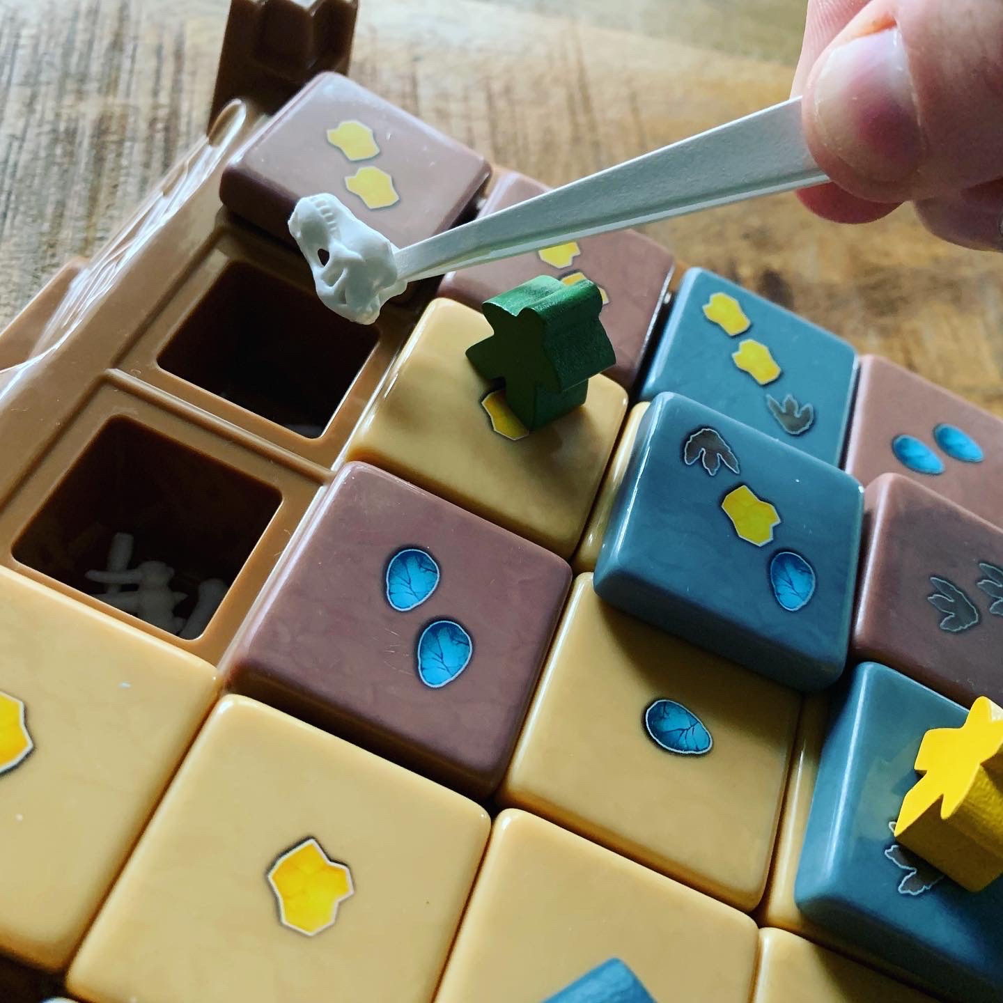 In Fossilis speel je op een uniek spelbord in 3D waar er dinosaurusbeenderen verborgen liggen onder dikke, stevige terreintegels die de begraafplaats aan het oog onttrekken. Naast een degelijke strategie heb je een goede planning en ook wat geluk nodig om de beste ontdekkingen te doen, in de vakliteratuur vermeld te worden en natuurlijk het spel winnen.